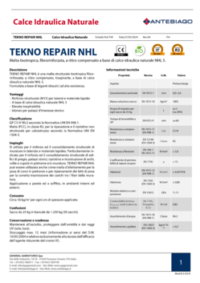 TEKNO REPAIR NHL è una malta tixotropica fibrorinforzata, a ritiro compensato, traspirante. Prodotto formulato a base di calce idraulica naturale NHL 5, inerti selezionati e specifici additivi.