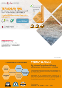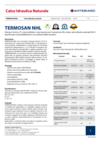 TERMOSAN NHL è un intonaco termico (T) da risanamento (R), a base calce idraulica NHL 5, macroporoso e macrocellulare, idrofobizzato e caratterizzato da un’elevata capacità di coibentazione (λ= 0,115 W/mK). Prodotto formulato a base di calce idraulica naturale NHL 5, inerti selezionati e specifici additivi ad azione aerante.