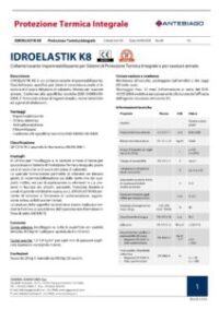 IDROELASTIK K8 è un collante/rasante impermeabilizzante, fibrorinforzato, specifico per lastre di zoccolatura poste al di sotto e al di sopra del piano di calpestio. Idoneo per rasature armate. Prodotto formulato a base di leganti idraulici, resine sintetiche ed agenti idrofobizzanti.