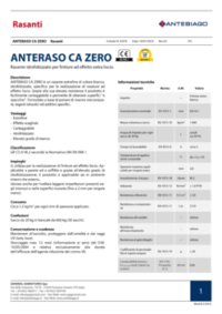 ANTERASO CA ZERO è un rasante extrafine di colore bianco, idrofobizzato, specifico per la realizzazione di rasature ad effetto liscio. Grazie alla sua elevata resistenza il prodotto è facilmente carteggiabile e permette di ottenere superfici “a specchio”. Prodotto formulato a base di polveri di marmo micronizzate, leganti idraulici e specifici additivi.