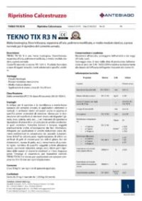 TEKNO TIX R3 N è una malta tixotropica, fibrorinforzata, espansiva all’aria, polimero-modificata, a medio modulo elastico, a presa normale. Classe R3 secondo la norma EN 1504-3.